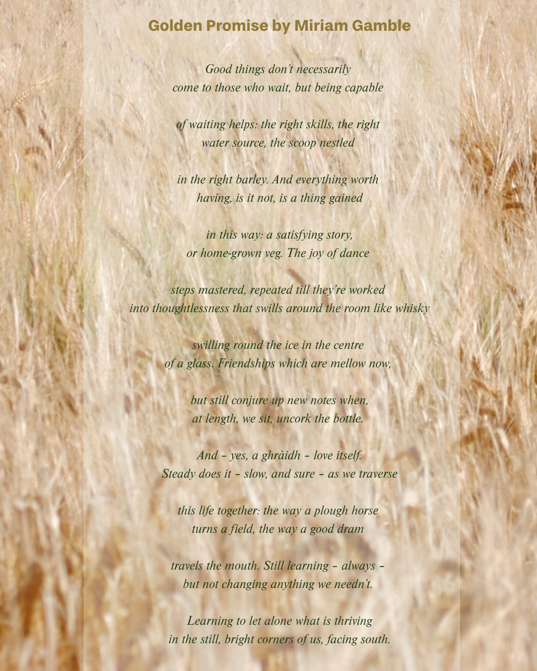 Ahead of Burns Night on Sunday 25 January, we’re proud to share Golden Promise — a newly commissioned poem by acclaimed poet and essayist Miriam Gamble.